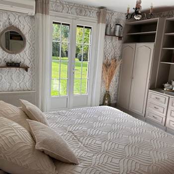 Deux chambres décorées avec goût pour des séjours intimistes : une chambre romantique pour 2 personnes et une suite modulable jusqu'à 4 personnes. Petit‑déjeuner gourmand inclus, accès au jardin, à la piscine partagée et aux rives de l'Eure privées.